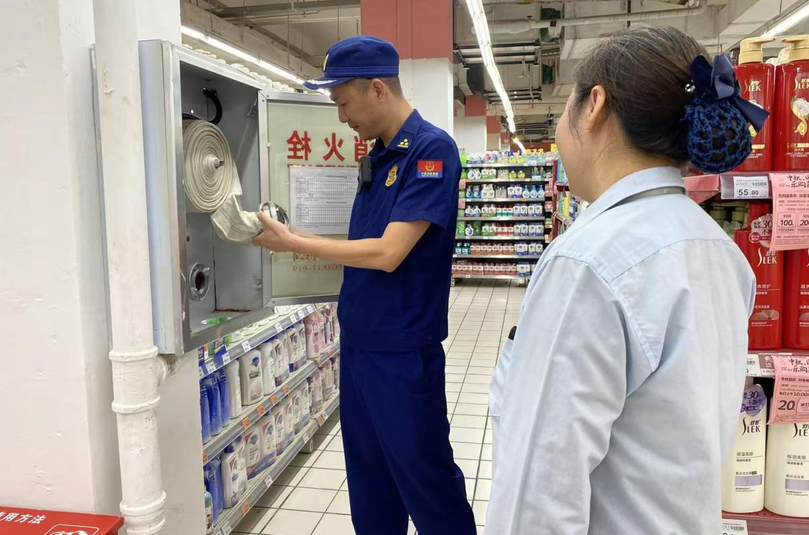 近日,沙洋镇联合消防大队深入辖区重点商超开展消防安全服务指导,采取“精准排查+现场教学”模式,全面助力企业提升自主防控能力,夯实消防安全基础。