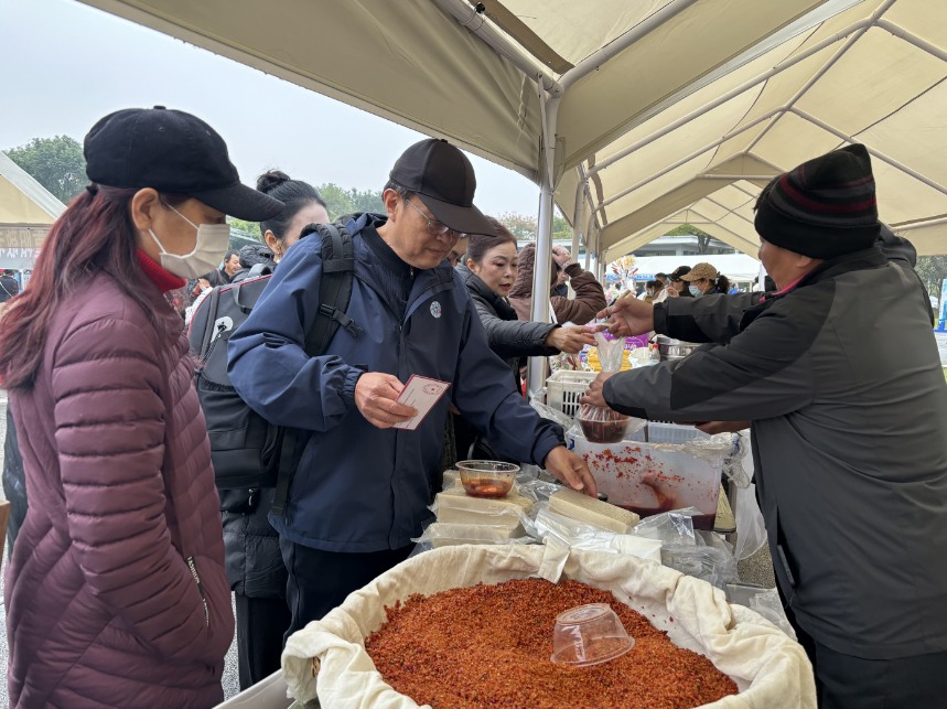 “今天买的猪蹄、鸡蛋、火烧馍和豆饼,用领的消费券购买非常划算。”沙洋市民文女士提着刚买的农副产品笑着说。