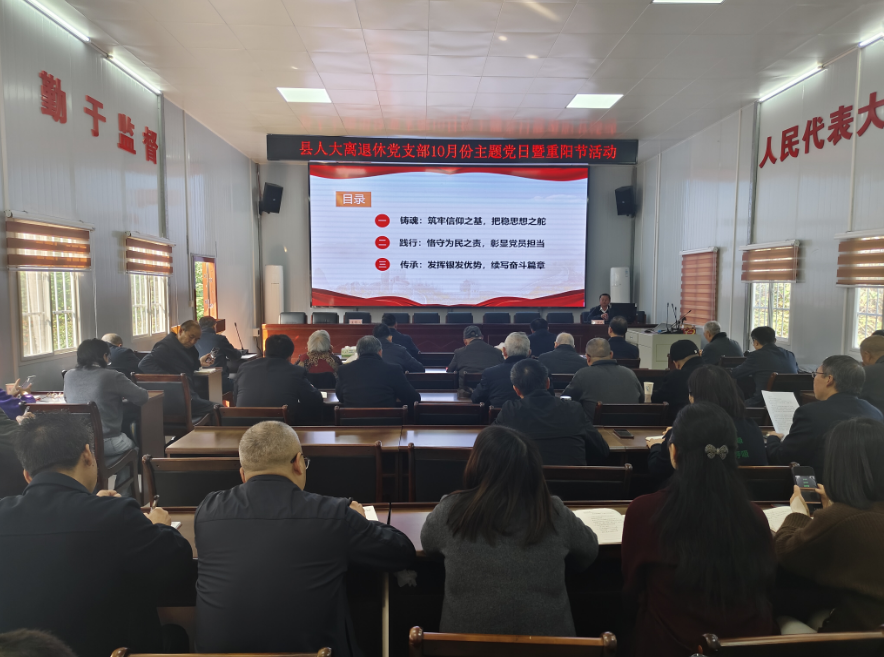 为弘扬尊老、爱老、敬老的优良传统,丰富离退休老同志的精神文化生活,近日,县人大离退休党支部开展了10月份主题党日暨重阳节活动,县人大常委会党组书记、主任李旭祥出席活动,在职机关党员干部参加活动。