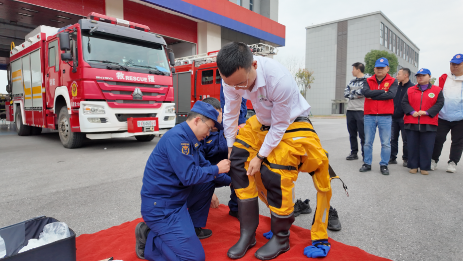 在消防车库,水罐消防车、登高平台消防车整齐列阵,消防员逐一打开器材仓,详细讲解各类消防装备在不同灾害场景中的作用。装备体验区,消防员重点展示了灭火防护服、抢险救援服及专业隔热服等多功能服装,并现场指导参与者试穿。“单是穿戴装备就如此费力,消防员还要负重冲向火场,他们的坚守太令人敬佩了!”荆门法麦克斯科技股份有限公司安全员杨谨源深有感触地说。