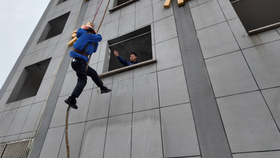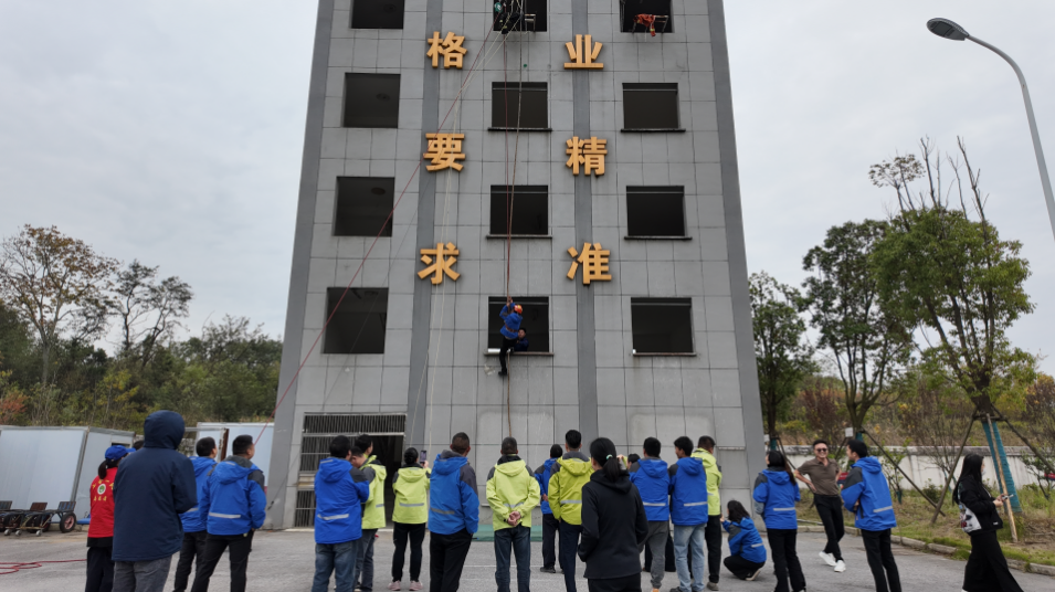 随后,大家来到消防科普教育基地,模拟报警系统、电气火灾成因实验台、烟雾传播模型等现代化设施,将抽象的消防知识转化为直观体验,参与者通过互动操作,熟练掌握了“小火快跑、浓烟关门”等逃生技巧。活动还设置了“我是消防员”技能实操环节,涵盖战斗服穿戴竞速、水带连接、油盆灭火及模拟浓烟环境逃生等内容。在专业人员的指导下,参训人员还积极参与绳索攀爬训练,切身感受消防技能的严格要求与实操难度。
