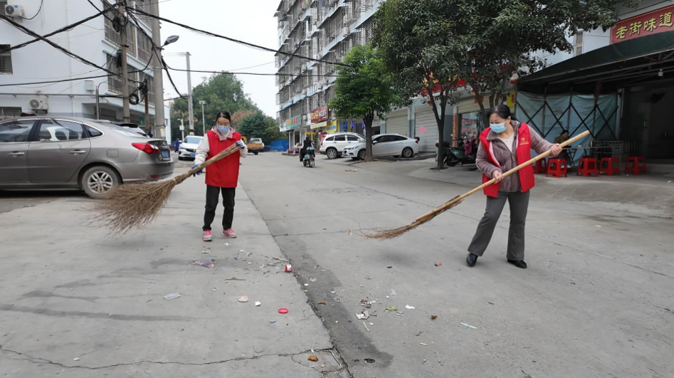在主干道环境提质升级的同时,居民住宅区的卫生死角也迎来“大变身”。汉津社区瞎子巷、陈家山社区农贸市场周边居民区,因人员密集、设施老旧,存在墙角积尘、枯枝败叶堆积、杂草丛生等问题。社区工作人员与志愿者们分片包干、逐一攻坚,他们俯下身、弯下腰,用扫帚清扫墙角缝隙的积尘,用铁锨铲除顽固杂草,将长期堆积的枯枝败叶、废弃杂物集中打包,由清运车辆及时拉运处理,让昔日杂乱的角落焕发新颜。