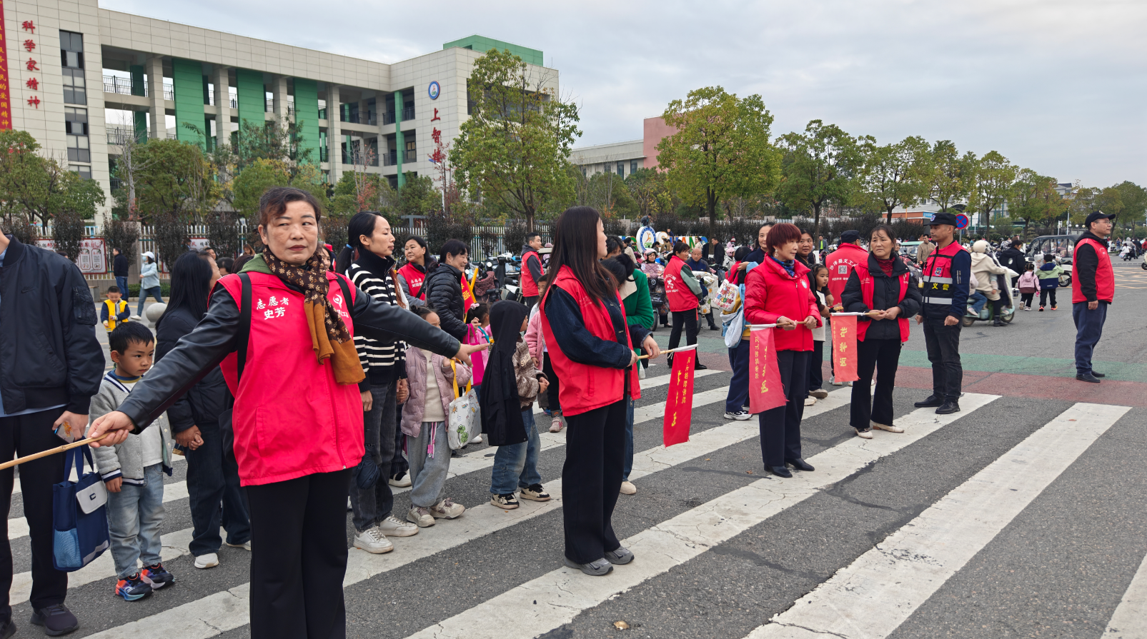11月12日下午5点,数十名身穿红马甲的沙洋义工联志愿者准时出现在汉上实验学校门口,开启新一轮护学岗志愿服务。他们手持鲜艳的小红旗,在川流不息的人潮与车流间筑起一道醒目的安全屏障,清脆的哨音不时划破喧嚣,为放学的孩子们铺就一条安心路。