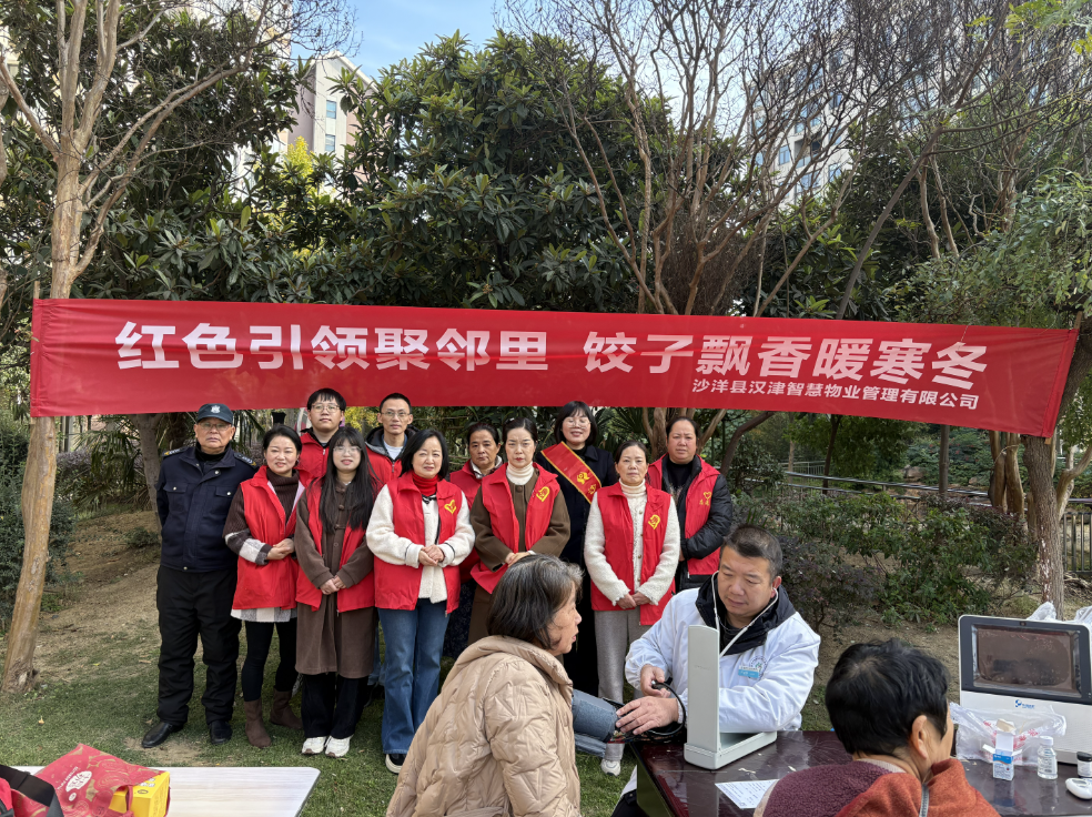 冬日情暖,邻里飘香。为丰富小区业主文化生活,增进邻里关系,共建和谐美好红色物业小区,城投集团鼎诚公司、汉津智慧物业公司联合县鸿鑫商贸资产经营公司、县宏硕现代农投公司联合支部、县农商银行、陈家山社区在蓝馨佳苑小区共同举办“红色引领聚邻里,饺子飘香暖寒冬”主题活动,共同缔造美好家园。