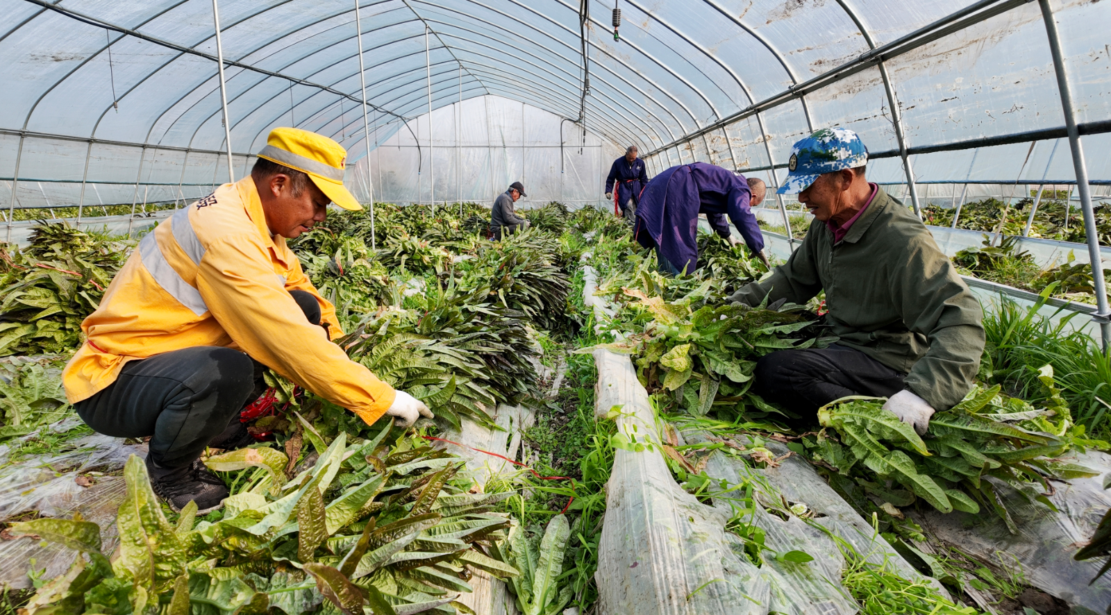 冬日暖阳下,毛李镇殷河村的蔬菜大棚内生机勃勃。青翠的莴笋铺满田间,村民们正抢抓晴好天气采收、分拣,一捆捆鲜嫩的莴笋被整齐装车,即将销往省内外市场。这个昔日靠闲置宅基地“起家”的产业园,如今已成为村集体和村民的“聚宝园”。