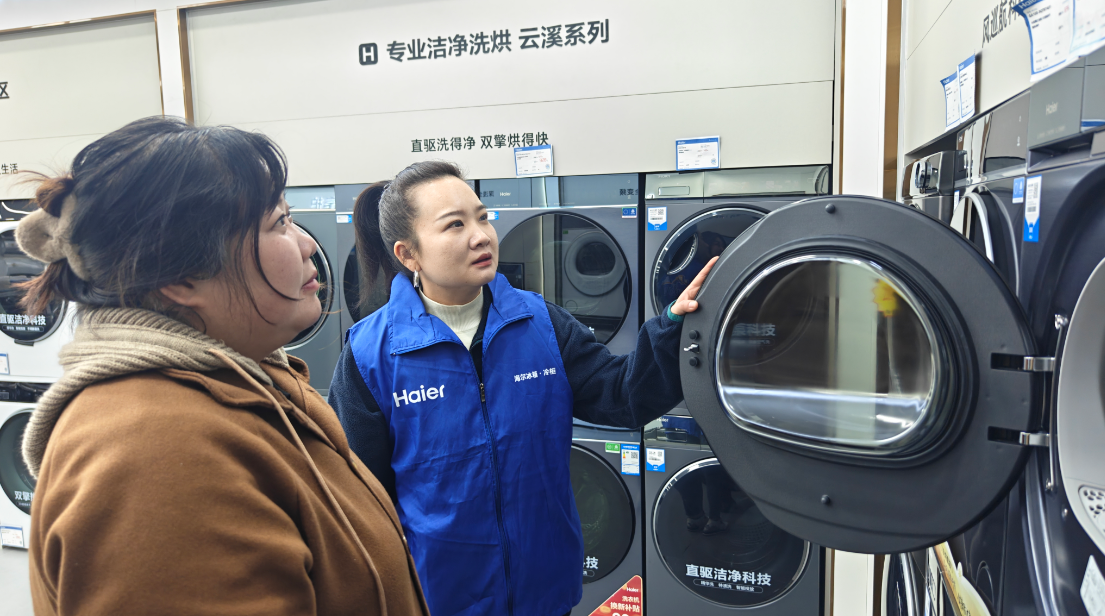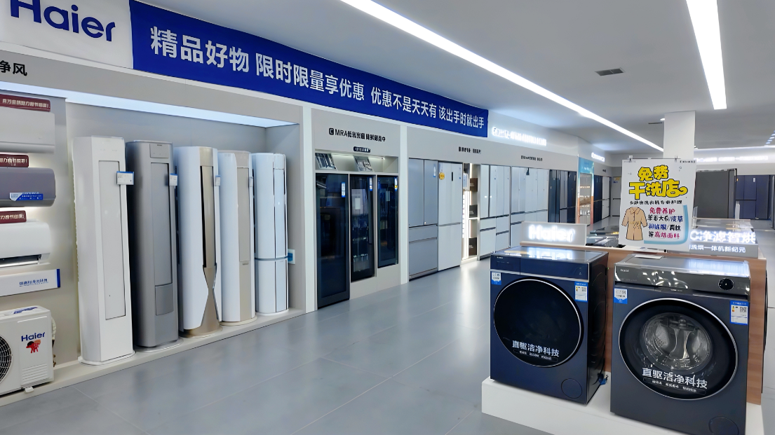在海尔专卖店内,冰箱、洗衣机、空调、电视机等产品按照不同生活场景有序陈列,智能家电的互动体验区吸引了不少顾客驻足。正在挑选家电的顾客曾巧笑着说:“我们家的电器都是在这里买的,他们店服务态度很好,种类又很齐全,不仅包送、包安装,有什么售后问题也能及时解决,在这里购买电器很放心。”