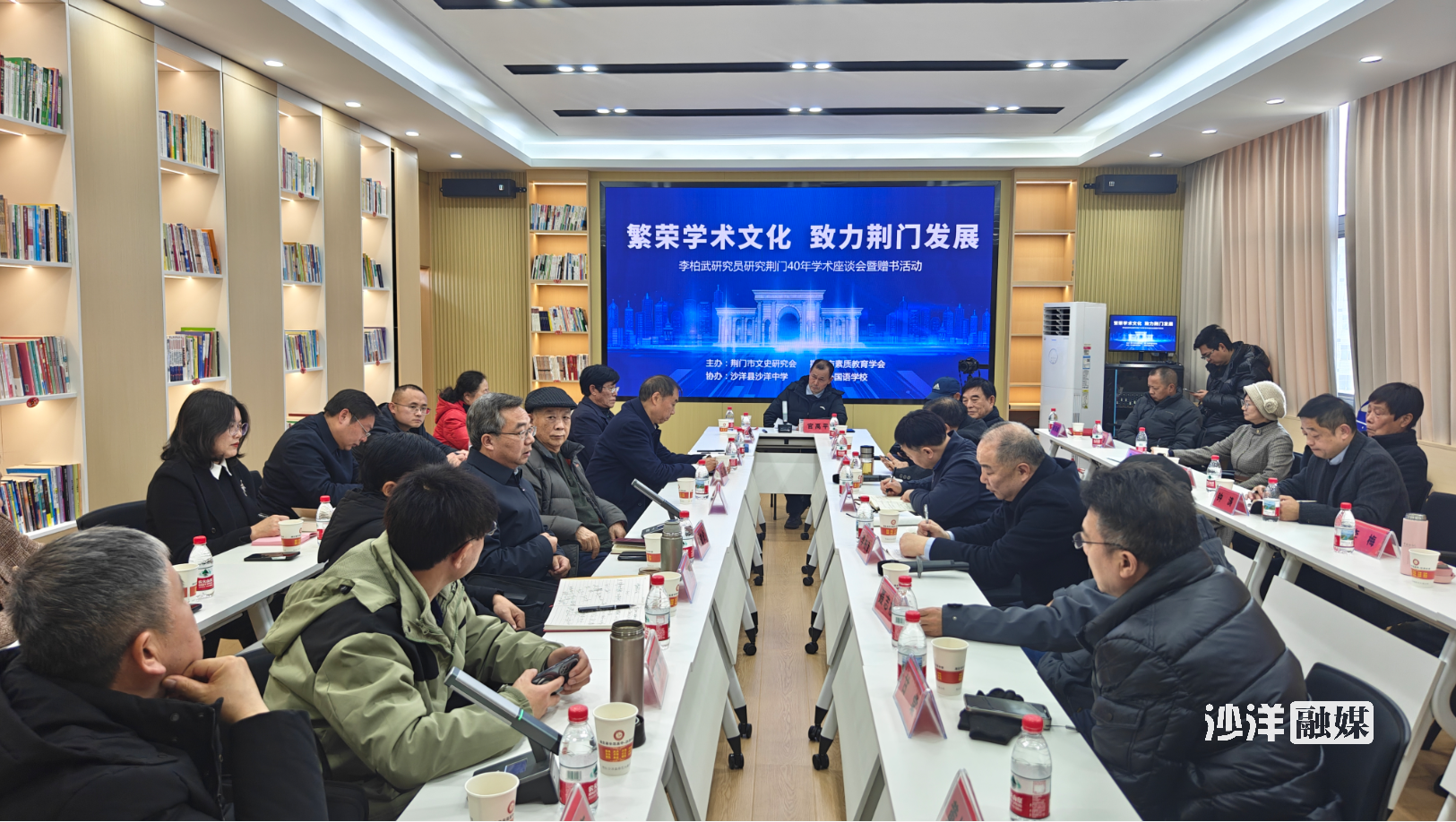 1月11日,李柏武研究员研究荆门40年学术座谈会暨赠书活动在沙洋中学举行。本次活动以“繁荣学术文化 致力荆门发展”为主题,由市文史研究会、市素质教育学会主办,沙洋中学、沙洋外国语学校协办。市政协副主席、市社科联主席程彻出席活动。全市相关领域的领导、专家学者及教育界代表齐聚一堂,系统梳理了李柏武深耕荆门本土研究的学术成果。