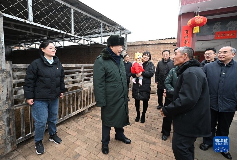 1月26日至27日,中共中央总书记、国家主席、中央军委主席习近平来到山西,看望慰问基层干部群众。这是26日下午,习近平在临汾市霍州市师庄乡冯南垣村考察时,同村民们亲切交流。新华社记者 谢环驰 摄
