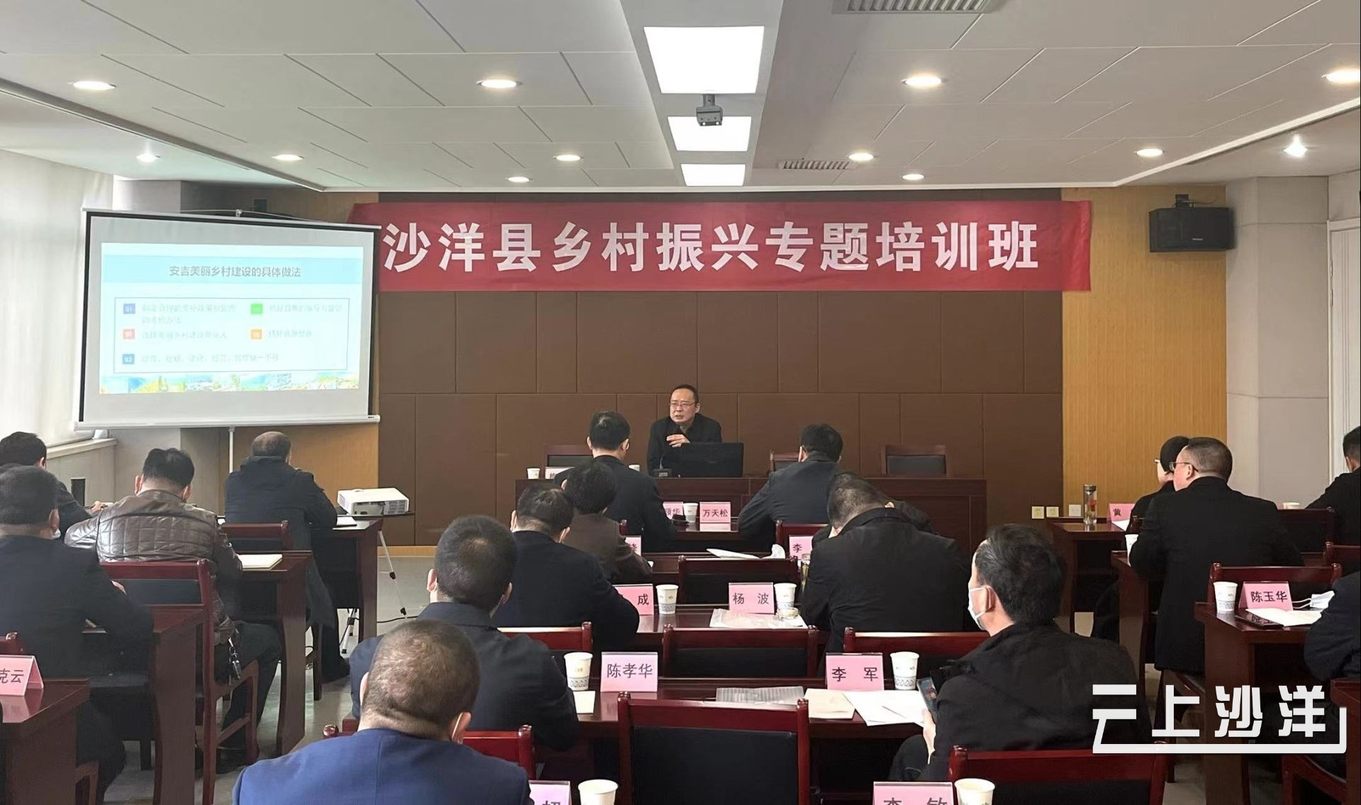2月28日,沙洋县首期乡村振兴专题培训班在浙江省安吉县美丽乡村研究院开班。县委常委、县委组织部部长万天松出席开班仪式并作动员讲话。部分县直单位负责人、6个乡镇党委书记、部分村党支部书记和新型经营主体负责人共计38人参加培训。