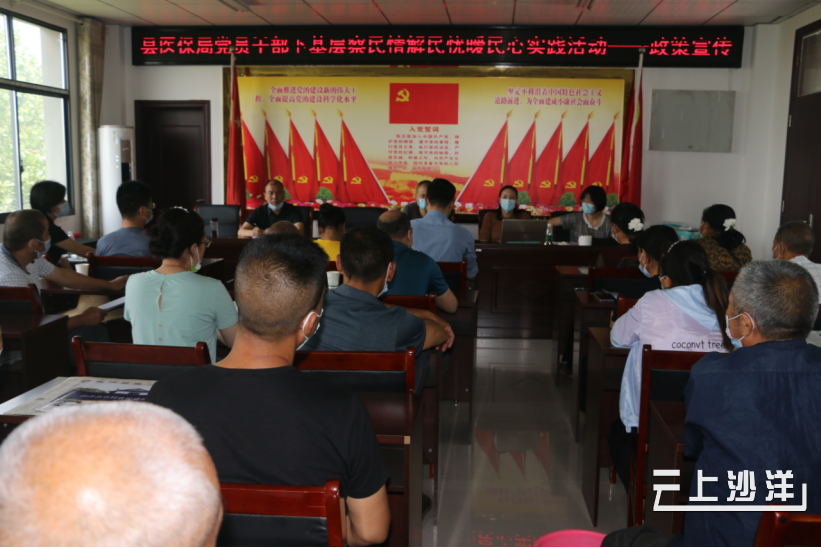 沙洋县医疗保障局志愿服务队走进拾回桥镇王桥村,进行医保政策宣讲。该村村委会二楼的会议室内,座无虚席,政策宣讲内容包括:慢性病评审政策、意外伤害政策、和异地就医转诊政策等。宣讲课堂还设置了互动环节,每当一项医保政策宣讲结束,立刻就有村民提问,在座的专家都会毫无保留地一一作答。互动环节让政策宣讲课堂一下子活跃了起来。