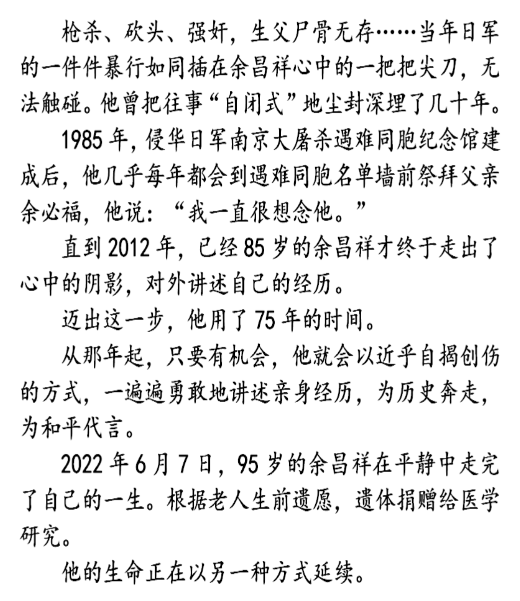 “我父亲被日本兵拳打脚踢,踢了不知道有多少脚,后来全身水肿,不久就去世了。”