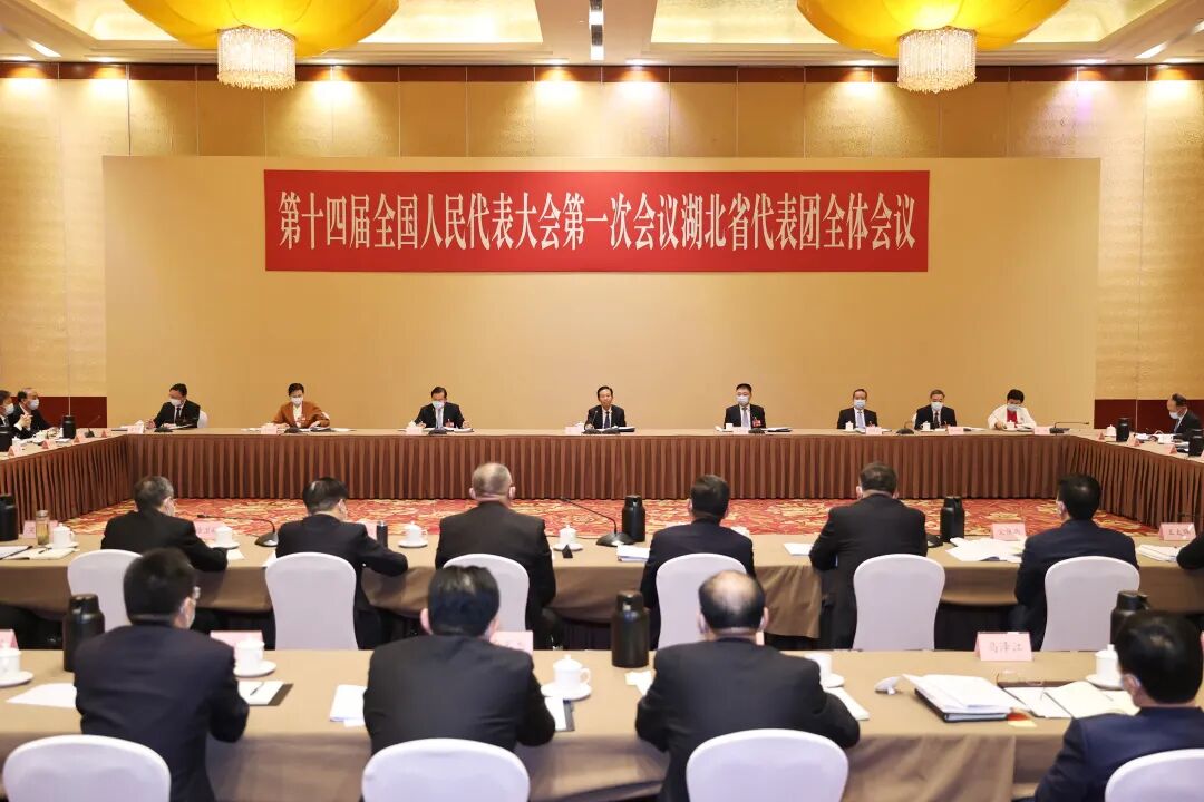 3月5日下午,十四届全国人大一次会议湖北代表团举行全体会议,审议政府工作报告。
