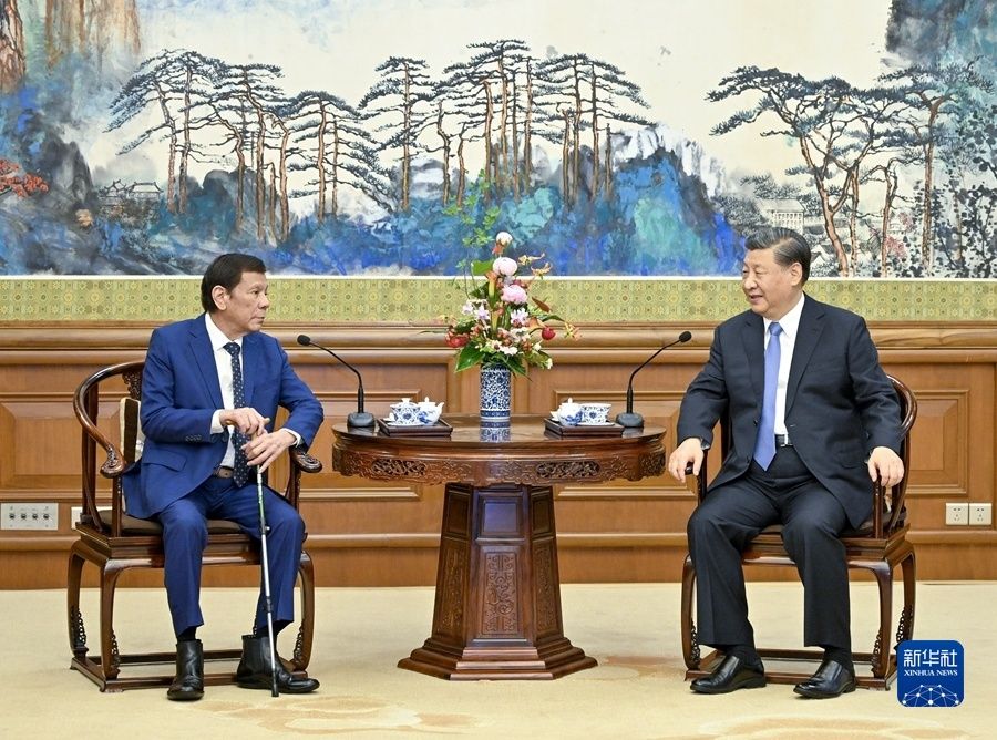7月17日下午,国家主席习近平在北京钓鱼台国宾馆会见菲律宾前总统杜特尔特。新华社记者 殷博古 摄