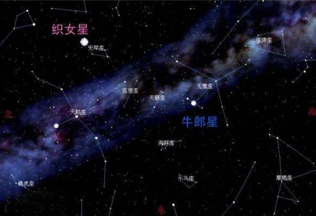 早在远古时代,古人观察星象发现天上有两颗被银河相隔,但是又非常明亮的星星,结合当时男耕女织的社会背景,分别叫作牛郎星与织女星。