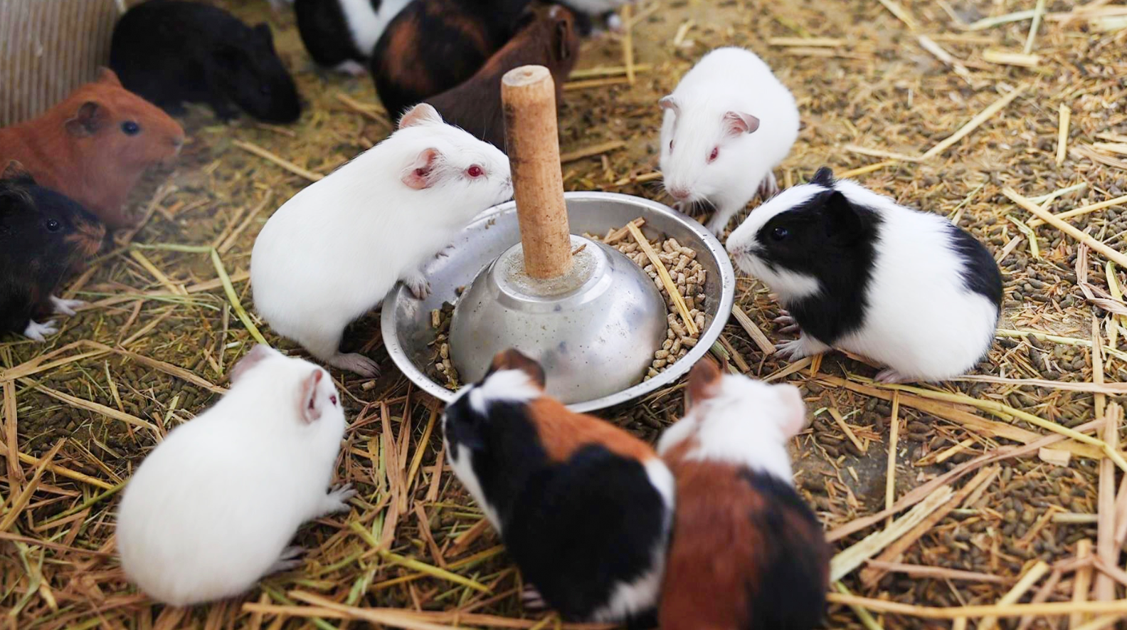 在养殖技术上,文军也慢慢摸索出了“门道”。“豚鼠的食物看着简单,实则有讲究。”他指着圈舍旁的饲料区介绍,每天早晚两次喂食,以自种的橡草为主,搭配干净的干稻草,还要加少量精饲料。最初,精饲料是他自己用玉米粉、豆粕、米糠等原料拌制,后来规模大了,为减少工作量,又反复试验了一二十家厂家的小猪料,最终选定了一款,一用就是七八年。