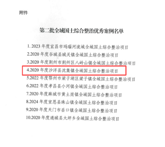 近日,湖北省全域国土综合整治领导小组通报表扬全省全域国土综合整治优秀案例,沙洋县沈集镇全域国土综合整治项目榜上有名。