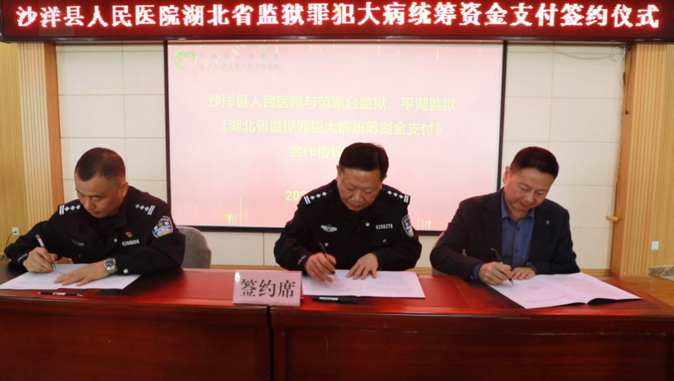 11月4日,沙洋县人民医院与湖北省监狱系统举行罪犯大病统筹资金支付签约仪式,以优质医疗资源赋能司法保障,为患病罪犯健康权益筑牢防线。