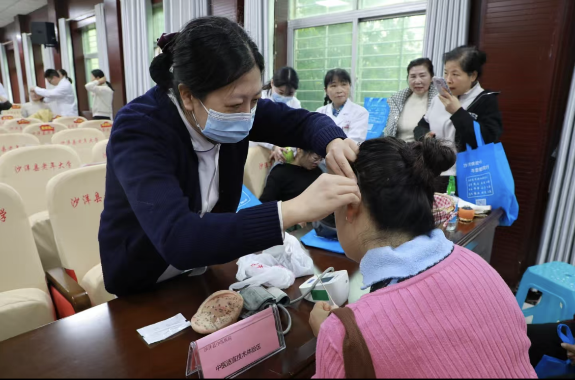 在健康体验环节,医护人员有条不紊地为老人们测量血压、血糖,细致解答慢病管理、日常养护等疑问。一旁陈列的药食同源食材直观易懂,成为普及养生知识的“活教材”。与此同时,中医理疗火热开展,推拿、刮痧、艾灸等传统疗法轮番上阵,医护人员专业的诊疗技法与贴心服务,切实解决了老人们常见的健康困扰。