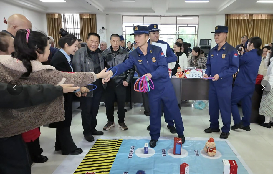 活动现场,消防救援指战员演示了破拆、灭火等硬核技能,展现了过硬的专业素养。现场还设置了多个体验区,群众可试穿灭火战斗服、操作灭火器,并参与“水带保龄球”“消防套圈”等互动小游戏,在沉浸式体验中轻松学习消防知识。