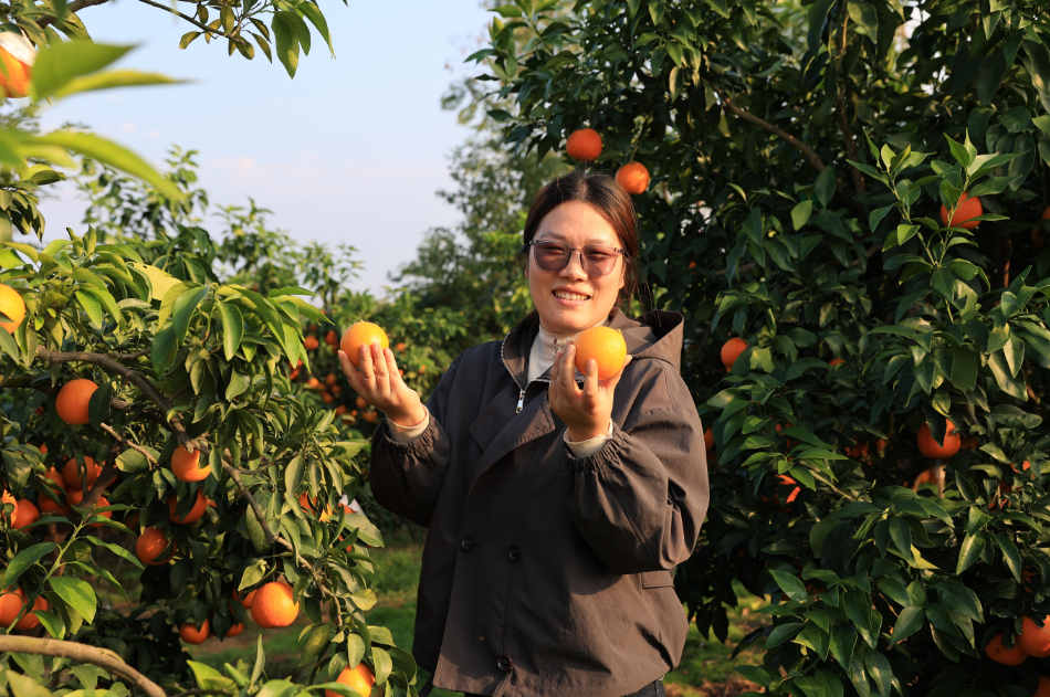“你看这橙子,色泽金黄,皮薄肉多,汁水特别充足!”游客袁女士捧着刚摘下的果冻橙,笑得合不拢嘴。她告诉记者,自己已是第三次来这里采摘,这次特意带上同事一同前来。“这里风景好、空气清新,果冻橙酸甜可口,摘一些回去给家人尝尝鲜,大家都特别喜欢。”说话间,袁女士又小心翼翼地摘下几个熟透的橙子,装进了采摘篮。