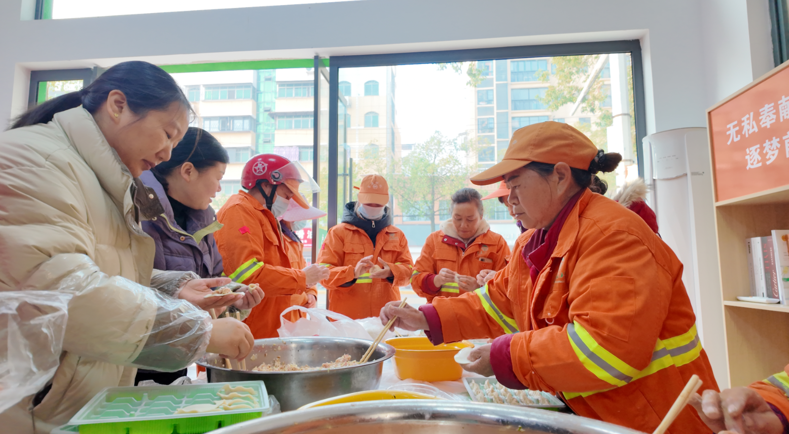近日,沙洋县平湖大道户外劳动者之家内暖意浓浓,沙洋县市容环境卫生管理处在此开展“饺香迎冬至 致敬环卫橙”主题活动,邀请一线环卫工人齐聚一堂,包饺子、话家常,在欢声笑语中迎接传统佳节。