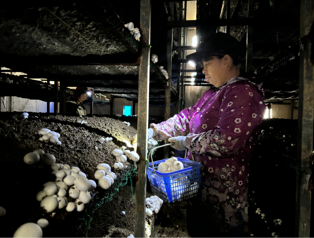 产业兴旺,就业不愁。聚菇园始终坚持“优先本地用工”原则,吸纳基地周边5公里内的村民就近务工。“我在这里干了6年多,每月工资两三千元,稳定又踏实。”48岁的彭群芝一边利落地分拣双孢菇,一边笑着说,“在这里上班既能挣钱,又能照顾家庭,日子过得越来越有奔头。”