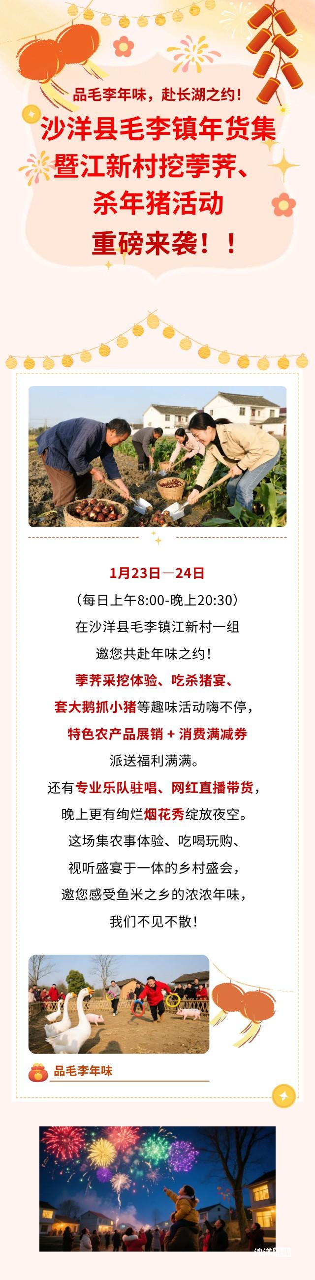 品毛李年味,赴长湖之约!沙洋县毛李镇年货集暨江新村挖荸荠、杀年猪活动重磅来袭