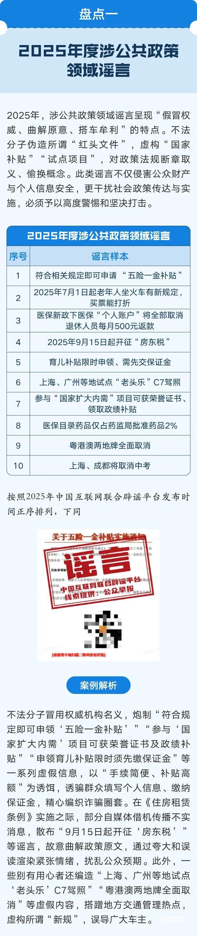 岁末年初之际,中国互联网联合辟谣平台特此盘点2025年度网络谣言,对于过去一年传播较广、误导性强的热点谣言,拆解套路、廓清迷雾、锚定真相。