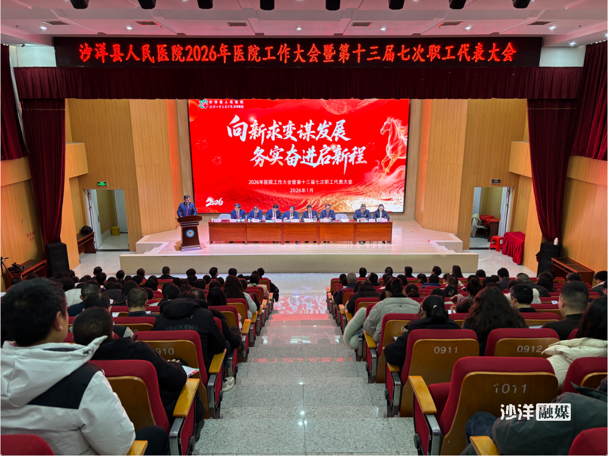 1月28日,沙洋县人民医院2026年医院工作大会暨第十三届七次职工代表大会举行,回顾总结2025年工作,安排部署2026年医院工作任务。