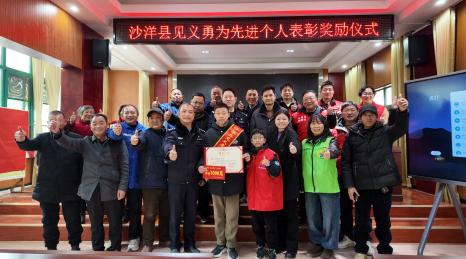 2月12日,沙洋县举行见义勇为先进个人荣誉授予仪式,为熊明洋、邓胜(化名)颁发“沙洋县见义勇为先进个人”荣誉证书及奖金,以榜样力量弘扬社会正气、传递文明新风。