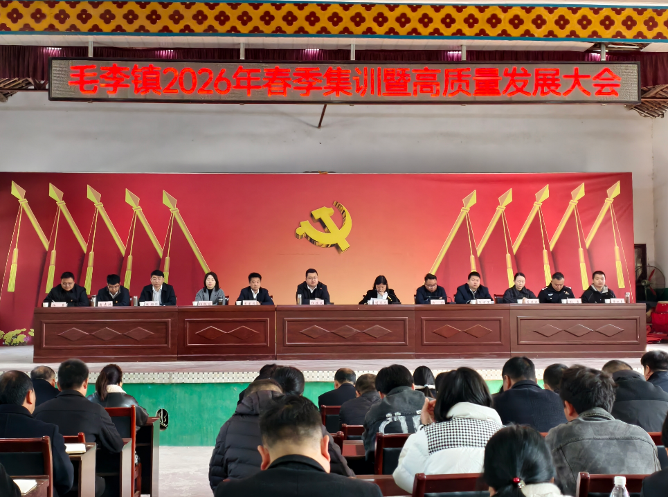 3月13日,毛李镇召开2026年春季集训暨高质量发展大会,全体机关干部、各村(社区)“两委”成员、镇直单位负责人及驻村工作队队长参加会议。