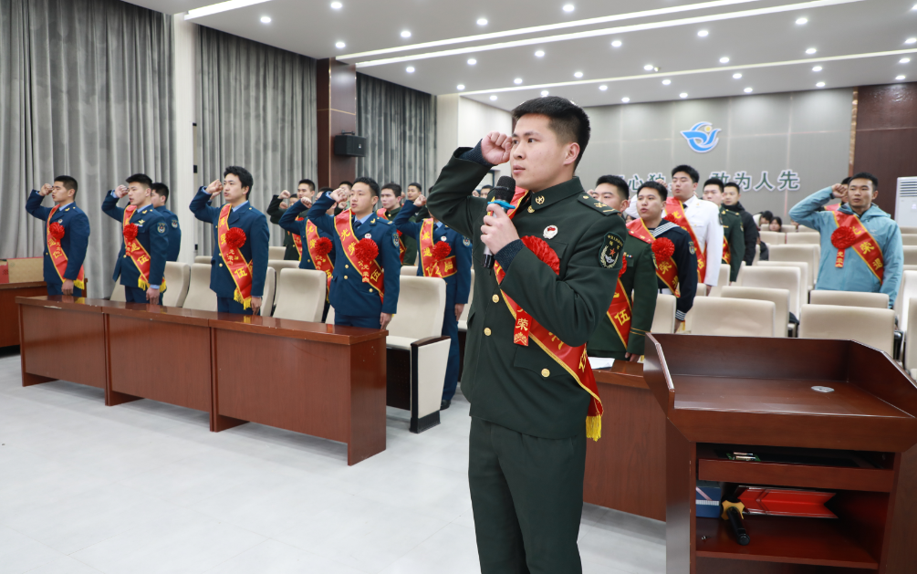 仪式在庄严的国歌声中拉开帷幕。学生代表依次为退役士兵佩戴大红花,向光荣返乡的军人致以崇高敬意。全体退役士兵精神抖擞,庄严宣誓,铮铮誓言铿锵有力,充分彰显“退役不褪色、退伍不失志”的坚定信念。