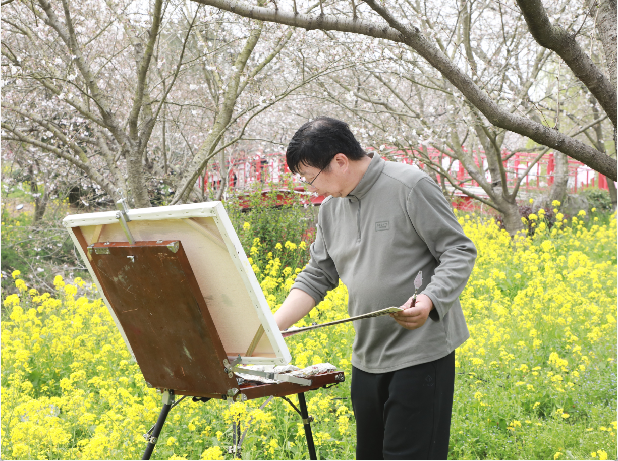 创作的脚步并未就此停歇。采风团一行还前往雷都樱花部落开展实地写生,大家穿行于烂漫花海之间,细致观察春日景致,将自然灵秀与乡土气息融入画笔,以油画、国画、速写等多种形式,生动记录沙洋乡村的发展新变化与生态之美。