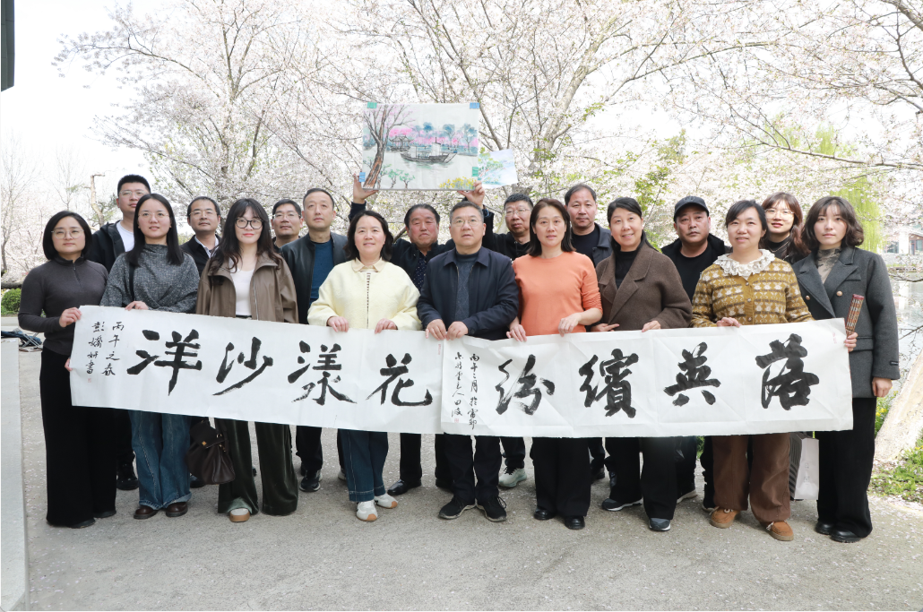 “今天来到沙洋县曾集镇张池村,天朗气清、惠风和畅,看到万亩油菜花,心中倍感愉悦,为我们当地文旅发展点赞,今天我有感而发,写了一幅对联,上联是‘万亩金花铺汉上’,下联是‘一川春色满沙洋’。”民盟中央美院宜昌分院副秘书长罗毅感慨道。