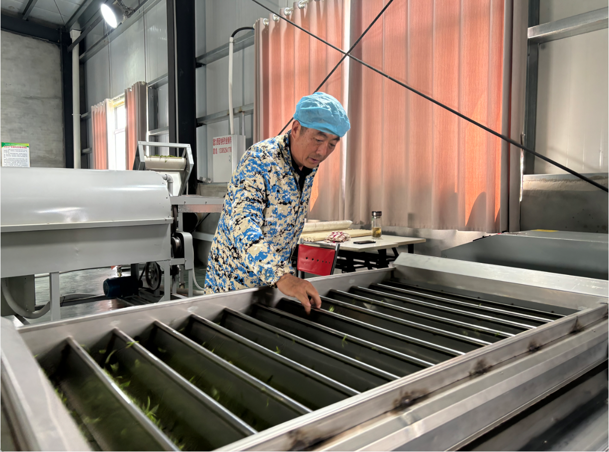 为最大程度锁住春茶的鲜爽,合作社严格执行“现采现制”标准,所有鲜叶在采摘后两小时内送入制茶车间,避免鲜叶失水、氧化变质。鲜叶送达车间后,将依次经过摊青、杀青、理条、烘干等多道工序。