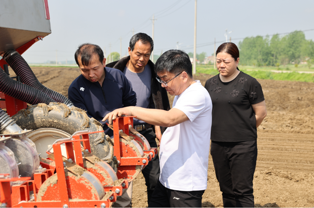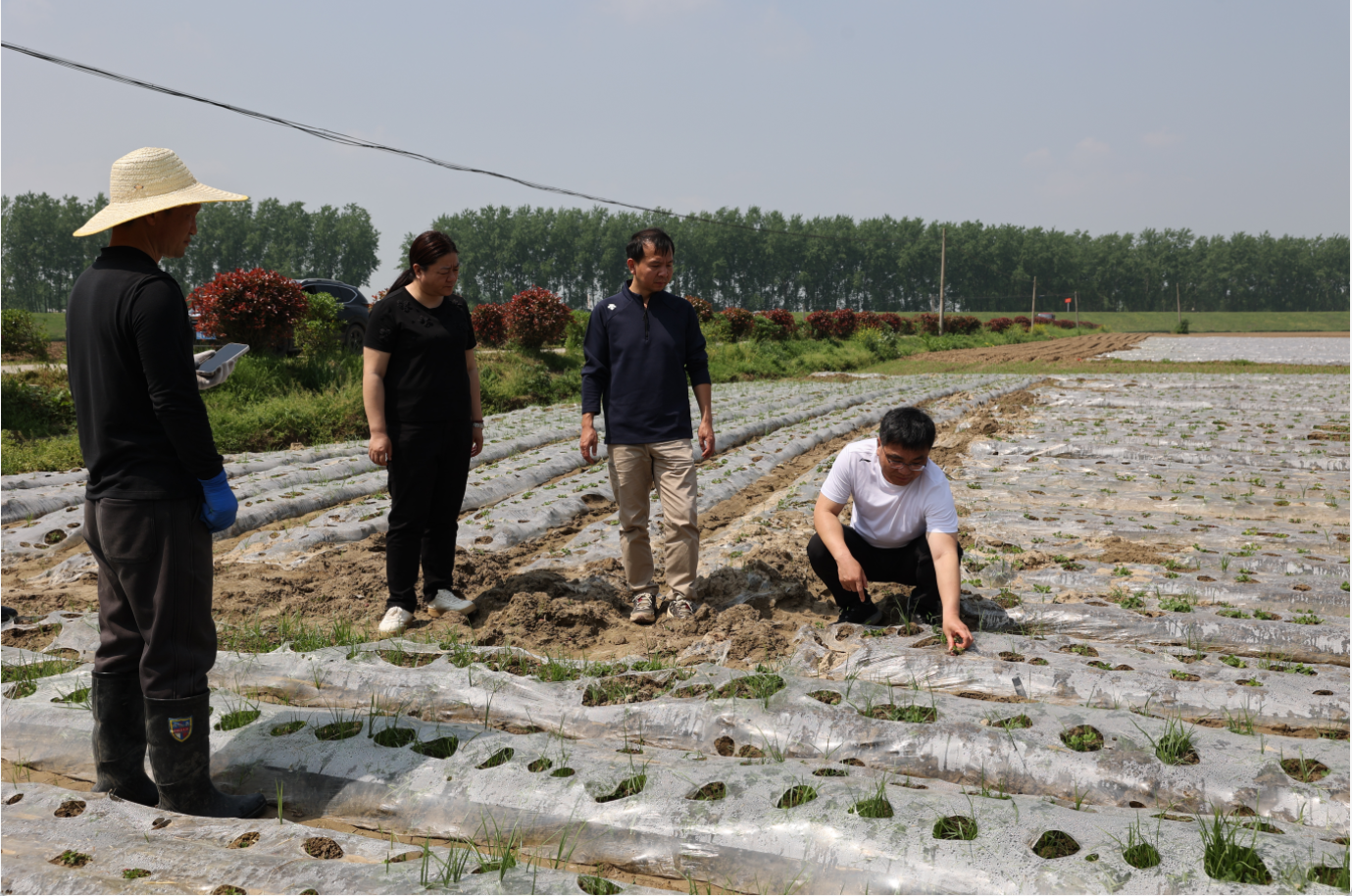 雷永一行先后深入李市镇蔡咀村、马良镇沿江村小籽红衣花生连片种植基地,实地查看土壤墒情和整地质量,围绕小籽红衣花生品种特性,现场讲解播种密度、株行距、地膜覆盖、种子处理、底肥配比及苗期管理等关键技术,并解答农户疑问。