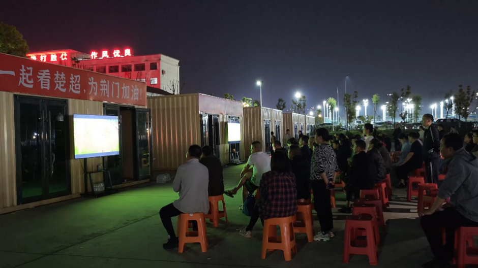 4月25日,2026湖北省城市足球联赛(楚超联赛)火热开赛,荆门金龙泉队客场对阵黄冈队。为营造浓厚助威氛围,让市民群众便捷共享赛事激情,沙洋县精心布设14个集中观赛点,市民群众齐聚一堂,齐声为荆门球队加油鼓劲,全民观赛氛围热烈浓厚。