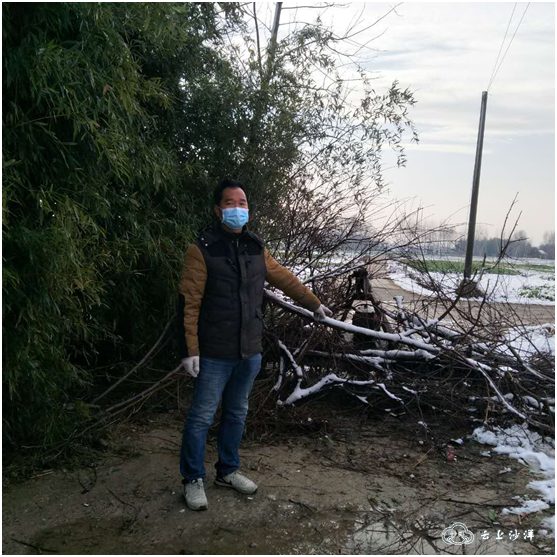 当村两委在微信群里招募志愿者时,他第一个报了名,主动担负起守七红路口的执勤责任和其他的防疫服务工作。每天天刚蒙蒙亮,他就到岗执勤,不论起风下雪都坚守岗位,直到天黑他才回家。董场有个小集市,他守的路口又是两村交界,前期超市还没有关停之时,偷偷来上街的人特别多,每次有人要过卡口,他就用自己“无声”的方式——激动地比划手势,让来人回去。好几次,当遇到需要买日用品的顽固村民,不顾他的阻止准备越界时,他就固执地比划着让他们留在原地,拿着购物清单帮他们去超市买油买米……